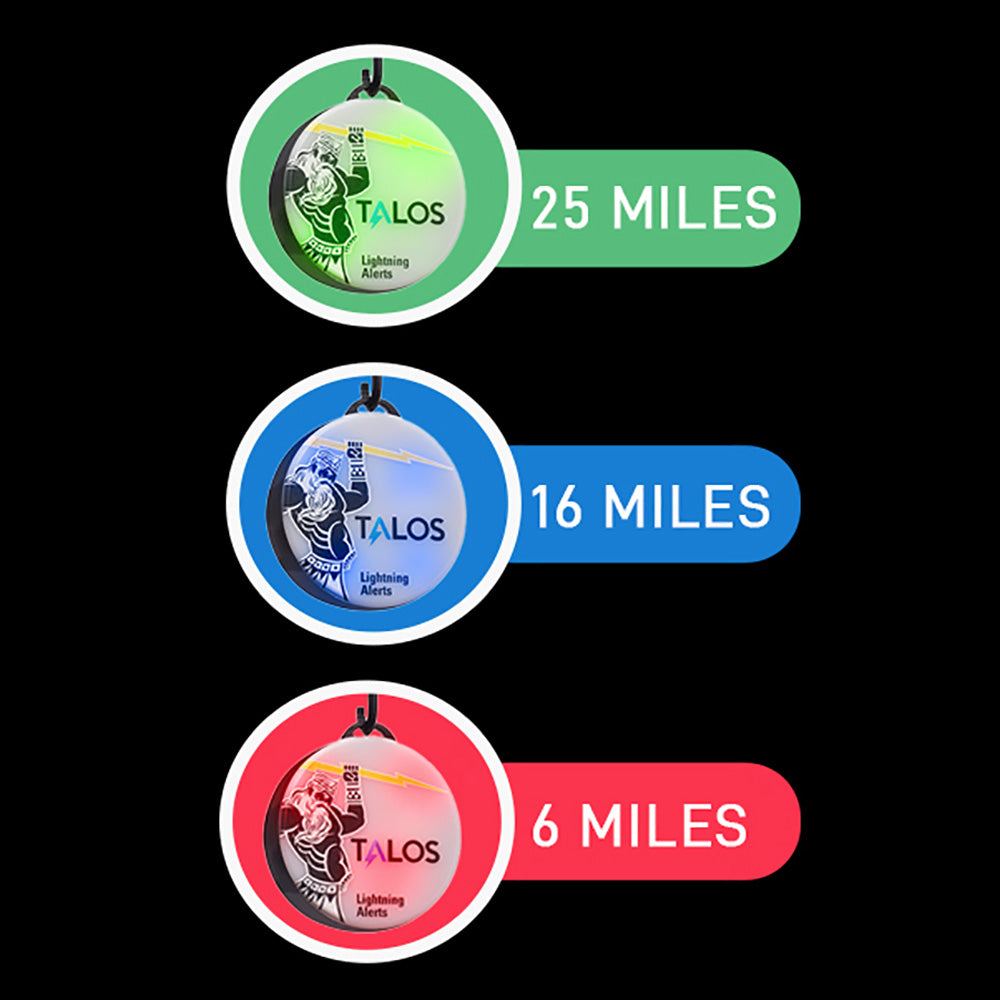 - When the next strike is detected, the unit turns back on, remembers, and displays the correct lightning distance range (red, blue, or green depending on lightning distance).